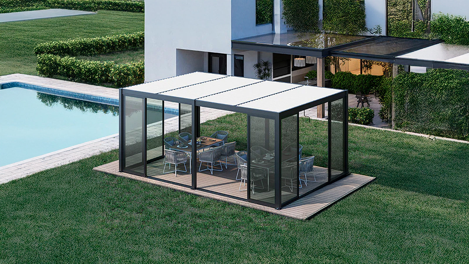 Bioclimatic pergola gazebo San Pablo Alu+, 4x5,8 m, White